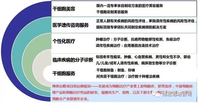 在我国精准医疗于2016年入选“十三五”百大项目,上升为国家战略,根据国务院印发“十三五”国家战略性新兴产业发展规划的通知,支持基因库、干细胞库等建设。我国干细胞产业从上游的存储到下游临床应用正在形成完整的产业链,博思远略咨询项目组根据相关资料分析预测2020年我国干细胞产业有望突破1000亿,未来市场增长迅速。